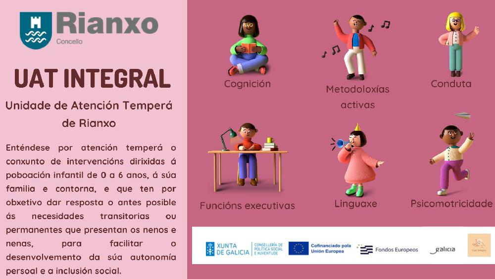 Dentro do Programa Operativo FSE Galicia 2014-2020 "O FSE inviste no teu futuro", o Concello de Rianxo foi beneficiaria da convocatoria de subvencións ás entidades locais da Comunidade Autónoma de Galicia para a prestacións do servizo no marco da Rede Galega de Atención Temperá nos anos 2024 a 2026, cofinanciada pola Unión Europea.