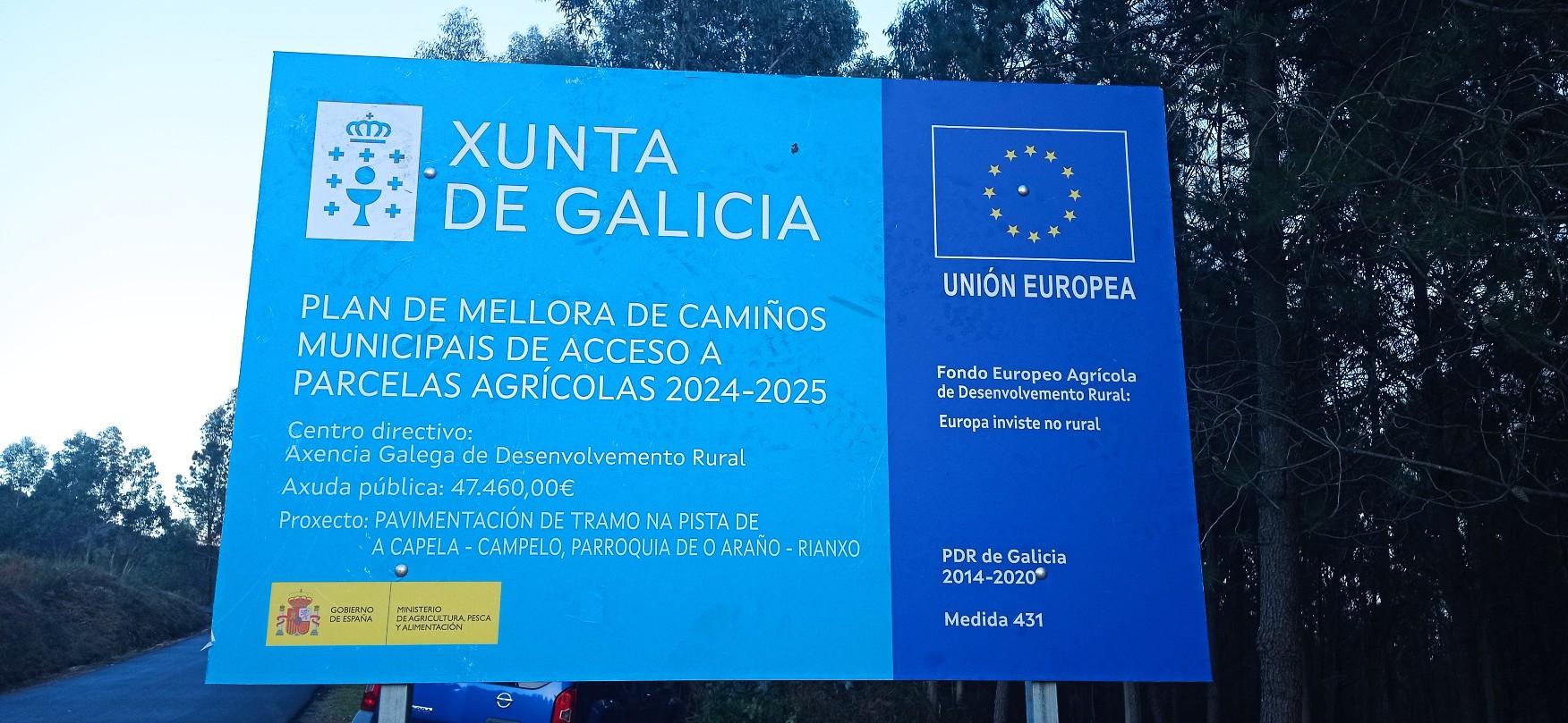 PROXECTO PAVIMENTACIÓN DE TRAMO NA PISTA DE A CAPELA-CAMPELO, PARROQUIA DE O ARANO-RIANXO - PLAN DE MELLORA DE CAMIÑOS MUNICIPAIS DE ACCESO A PARCELAS AGRÍCOLAS 2024-2025 (MR7O1E) - Concello de Rianxo