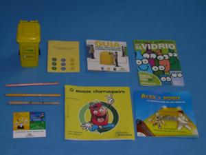 O alumnado co material de ECOEMBES, ECOVIDRIO e SOGAMA