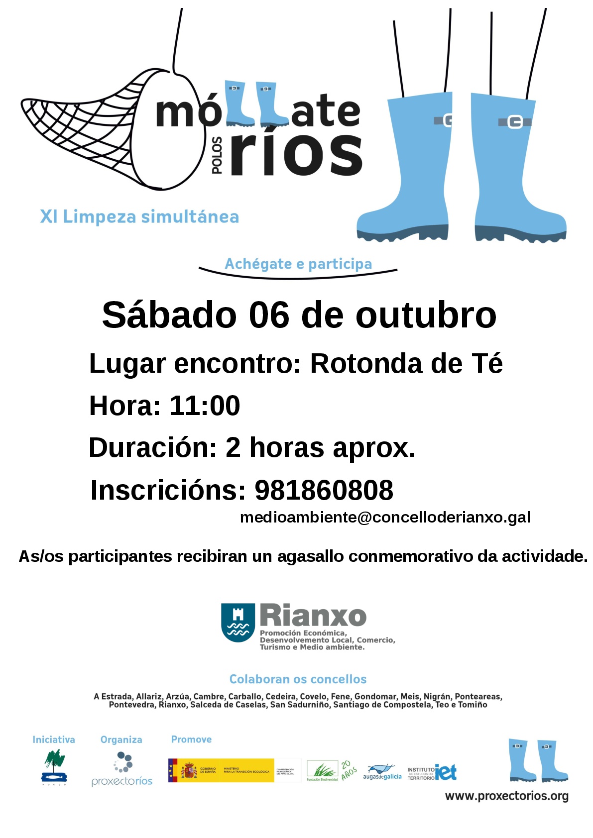 O sábado 6 de outubro de 2018, o Concello de Rianxo realizará a actividade “Móllate polos ríos: Limpeza do río Té”, enmarcada na XI Limpeza Simultánea do Proxecto Ríos.