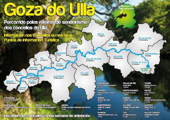 19 concellos bañados polo Ulla lanzan o programa "Goza do Ulla" de cara a promocionar e potenciar o seu patrimonio natural. A iniciativa turística pretende dar a coñecer o rico e valioso patrimonio natural dos territorios á beira do Ulla coa programación dun total de 19 roteiros de sendeirismo en cada un dos concellos dende agora e ata o mes de novembro.