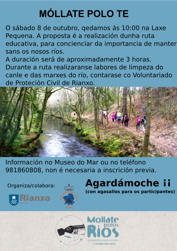 Chama ao 981-86.08.08 se che apetece participar e o día 8 ás 10:00 da mañán vémonos na Laxe pequena.