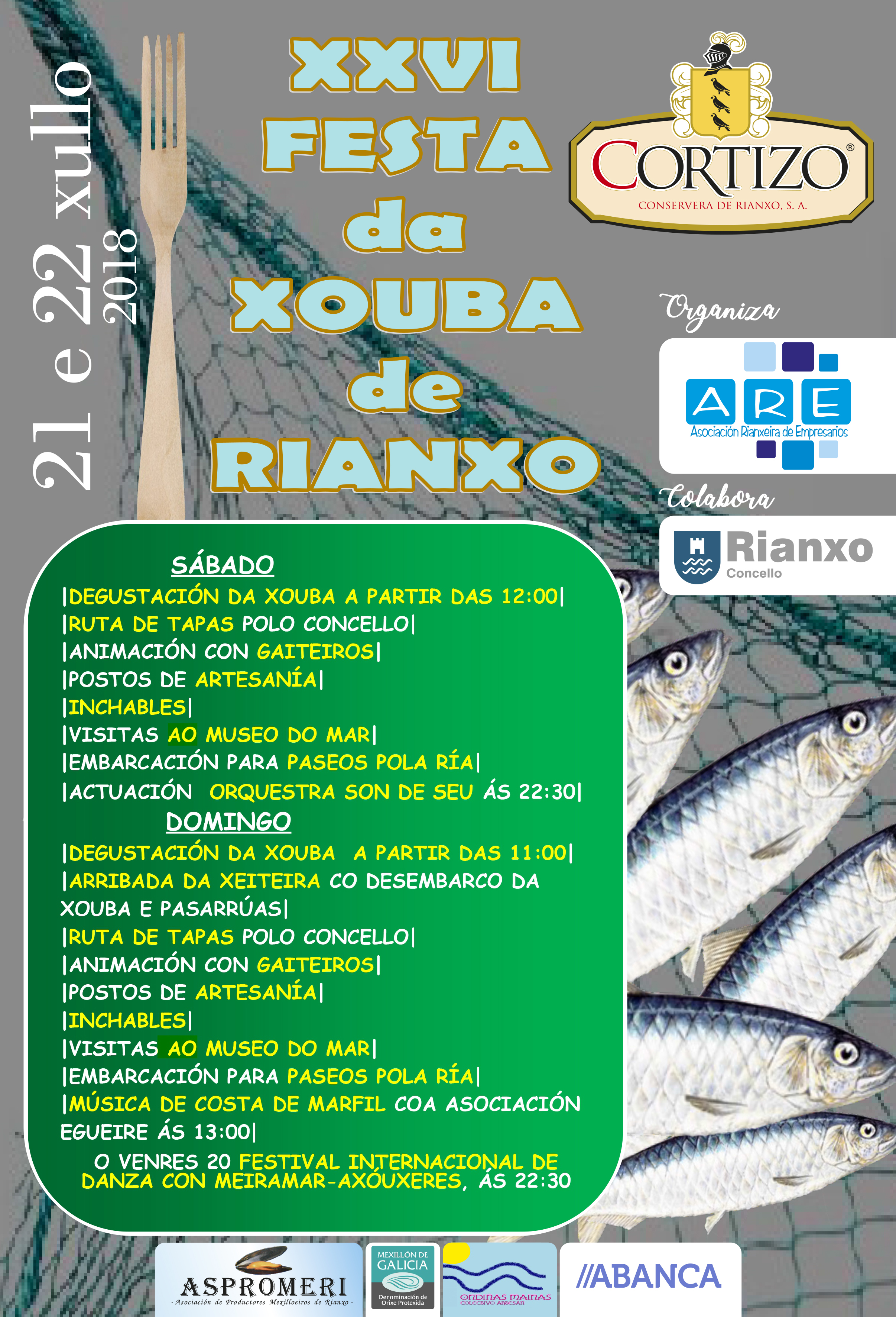 A Asociación Rianxeira de Empresarios, en colaboración co Concello de Rianxo, organiza a XXVI Festa da Xouba de Rianxo. A raíña das augas de Rianxo terá a súa festa grande a fin de semana do 21 e 22 de xullo, con múltiples actividades ao longo das dúas xornadas.